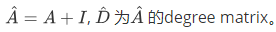 • 只使用A的话,由于A的对角线上都是0,所以在和特征矩阵H相乘的时候,只会计算一个node的所有邻居的特征的加权和,该node自己的特征却被忽略了。因此,我们可以做一个小小的改动,给A加上一个单位矩阵 I ,这样就让对角线元素变成1了。