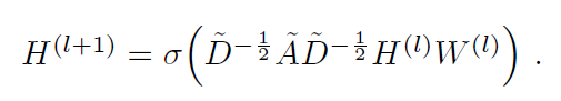 公式中的与对称归一化拉普拉斯矩阵十分类似,而在谱图卷积的核心就是使用对称归一化拉普拉斯矩阵,这也是GCN的卷积叫法的来历。原论文中给出了完整的从谱卷积到GCN的一步步推导,我是看不下去的,大家有兴趣可以自行阅读。