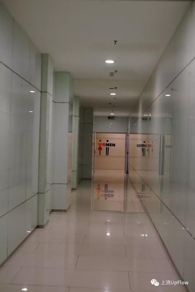 接下来我们看一看富力天汇,穿过一条幽深长廊才能到达的6楼厕所: