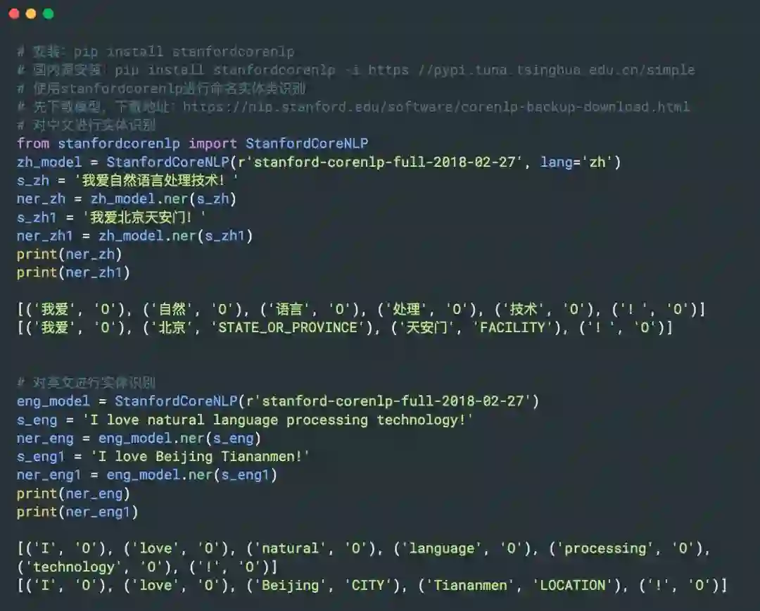 斯坦福大学开发的基于条件随机场的命名实体识别系统,该系统参数是基于 CoNLL、MUC-6、MUC-7 和 ACE 命名实体语料训练出来的。