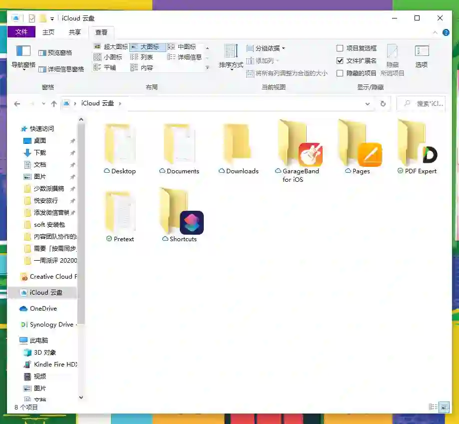 iCloud 已经深度整合到了 Apple 的生态系统当中,在 iPhone 上拍摄的照片、保存的邮件、创建的日历等等信息,都可以通过 iCloud 备份并同步到其它 Apple 设备上。而如果你因为自身或工作原因选择 Windows 作为办公设备,其实也可以通过 iCloud 获得不错的云端同步体验。除了查看拍摄的图片、保存的书签等等,iCloud for Windows 同样也支持按需同步功能。iCloud for Windows在 Windows Store 中安装 iCloud 并登录后,我们就可以在 Windows 10 的资源管理器中看到 iCloud 的文件存储目录了。和上面介绍的云盘一样,我们可以用同样的角标样式来判断 iCloud 文件在 Windows 上的按需同步状态,因为基于 Windows 10 按需同步的原生支持,在 Windows 系统设置的存储感知功能中也可以看到 iCloud 云盘的相关设置项目。iCoud 文件目录值得一提的是使用 iCloud 云盘作为学习和办公文件中转一定得考虑到文档类型的问题,我们在其它 Apple 设备上编辑、保存的 iWork 文件在 Windows 系统上虽然没有原生的应用支持,但依然可以通过 iWork 网页版本进行查看和编辑。在 iCloud.com 中打开总体来看,Windows 版的 iCloud 在按需同步体验上也非常接近 OneDrive,虽然缺少一些原生应用支持,但通过 iCloud 网页版能够解决大都数基于 iWork 的学习和办公需求,非常适合 Apple 产品和服务的重度用户。要说缺点的话,iCloud 云盘免费版只有 5GB 存储空间,如果你有更大的空间需求则需要进行付费购买。