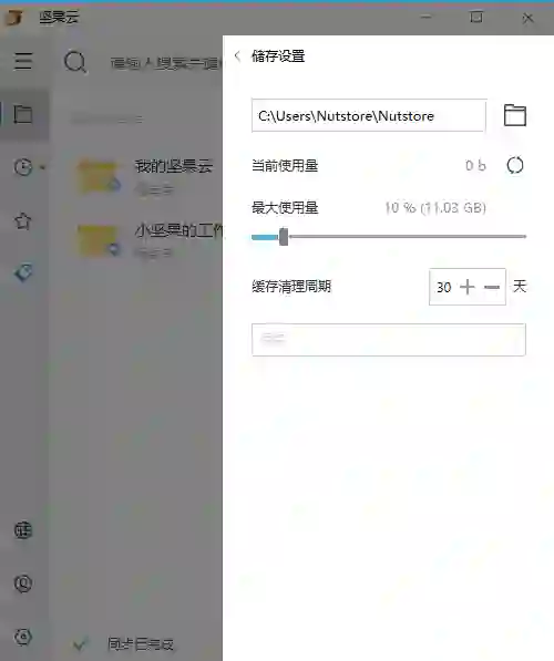 在以上介绍的同步网盘大多为国外网盘服务,而在按需同步这个需求上,大家常常选择的坚果云其实也提供了类似的功能。坚果云的按需同步为独立开发功能,也叫「云桥服务」。云桥服务并不依赖于 Windows 系统版本,换句话说它同样有着非常不错的系统兼容性。云桥模式同样支持按需取用文件坚果云的云桥服务和前面提到的按需同步文件索取方式类似,由于并未接入 Windows 的按需同步功能,文件同步状态显示和同类产品略有区别:同步但未下载的文件在资源管理器中以半透明图标显示;用「☁」标记的文件只有双击后才会下载使用,下载后图标左下方的标记则会变成一个「√」;而图标左下方有同步标识则表明该文件正在被同步,或当前没有网络连接,文档改动已经被被挂起。坚果云的不同同步状态提示坚果云为云桥服务提供了缓存清理功能,允许我们自行设定离线缓存文件的最大使用量和缓存周期,我们同样可以让它自动清理掉那些长时间没有使用的文件来节省空间。相比本文提到的大多数网盘服务,使用坚果云进行按需同步最大的优势在于其网络访问的稳定性,同时和 Dropbox 那种必须才能使用「智能同步」的服务相比,坚果云即便是免费版本也可以使用「云桥」,免费版提供 1GB 的上传和 3GB 的下载,功能限制主要集中在文件历史版本和误删恢复上。加上它对 Office 365 和 WebDAV 协议的良好支持,非常适合需要跨设备学习、工作但本地存储空间有限的用户。