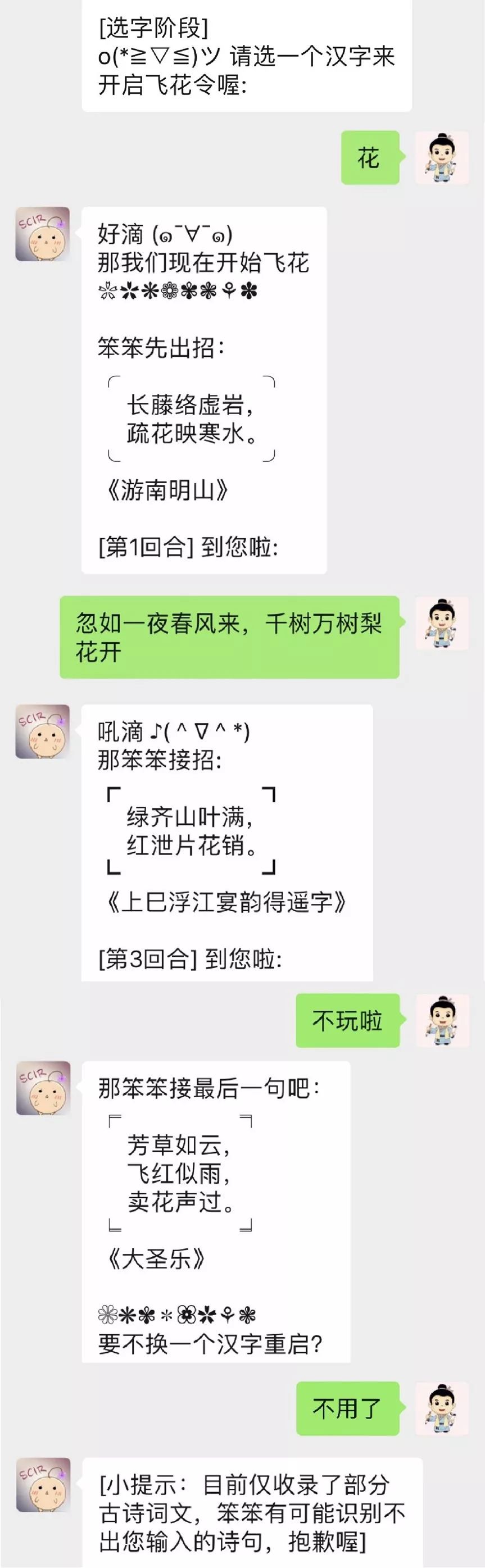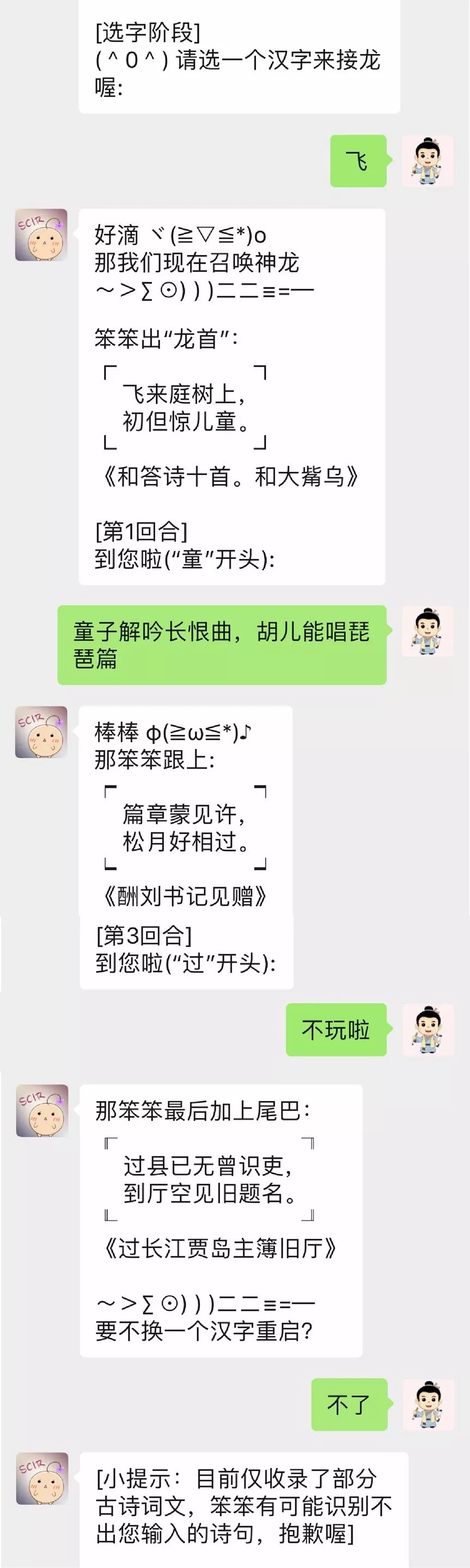 另外,如果输入【笨笨古诗繁体】,笨笨还能用繁体字陪您吟诗作对,是不是感觉更有古韵了。还有更多彩蛋等您发掘哦~