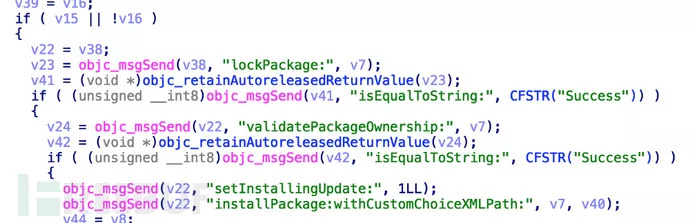 MAU 提供的接口有一个 - [MAUHelperTool installUpdateWithPackage:withXMLPath:withReply:],它接受来自XPC客户端的路径并会安装它,但它会锁定包文件并在包上执行数字签名验证!