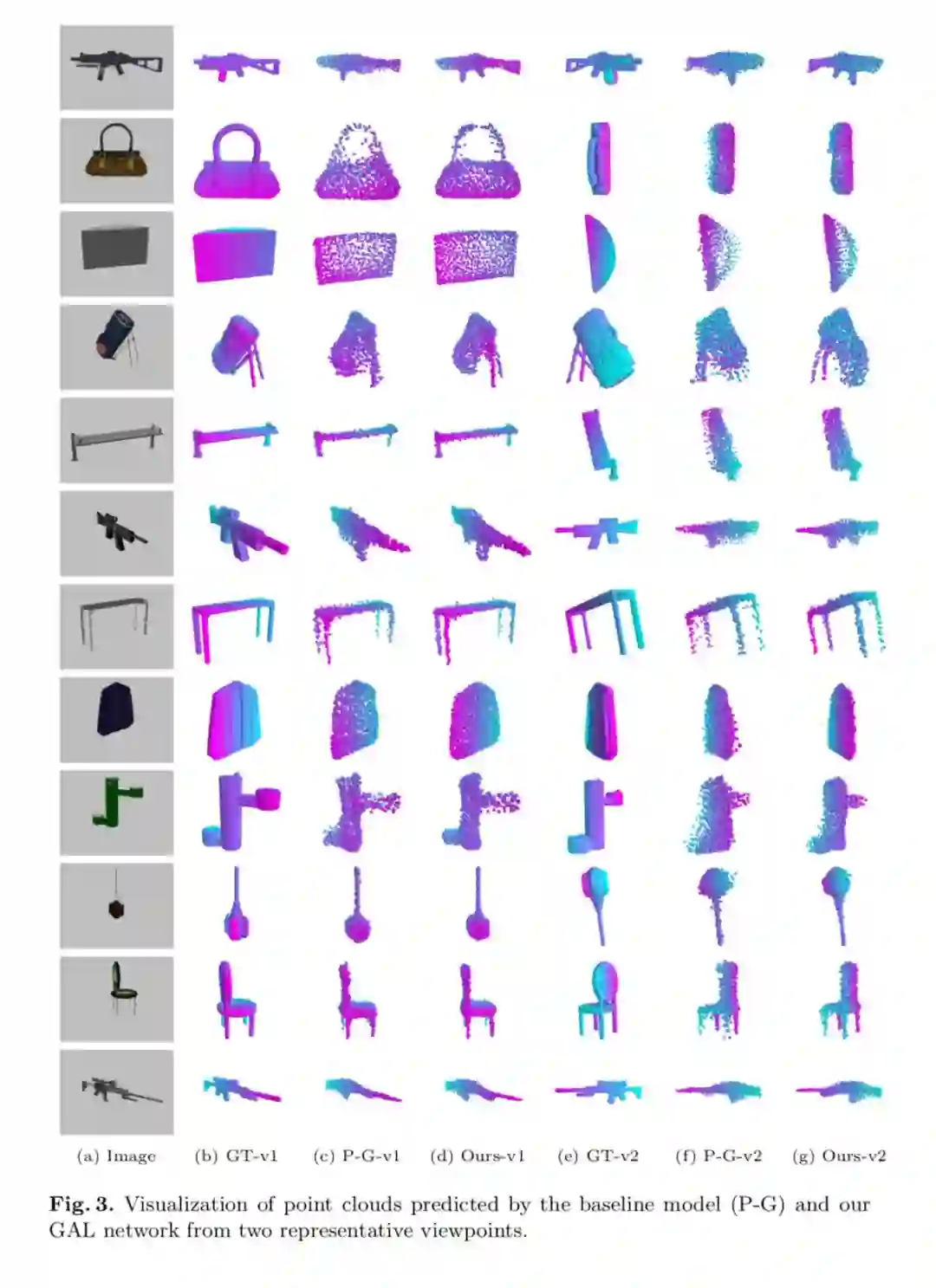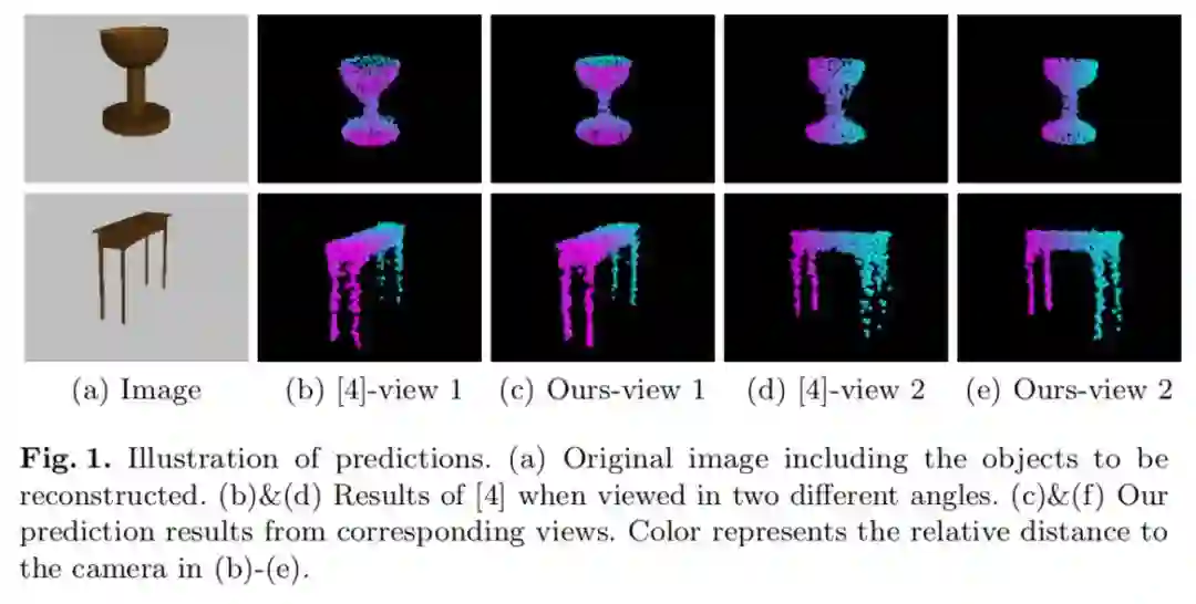 多视角几何损失函数:多视角几何损失函数保证了重建的点云不仅是从拍照视角 (v1),而是从各个视角看 (v2) 都符合真实物体的三维形状。