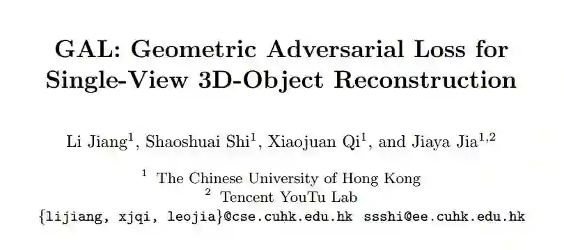 论文:GAL: Geometric Adversarial Loss for Single-View 3D ObjectReconstruction