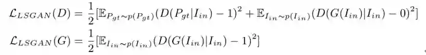 在判别网络中,我们使用了预训练好的 CNN 提取 2D 图像的语义特征,使用 PointNet 提取点云的全局特征。由于真实点云比生成点云更密,我们在实际中下采样的真实点云,使其与生成点云规模一致。并且,我们采用了 LSGAN 作为我们的条件对抗损失,如下所示:
