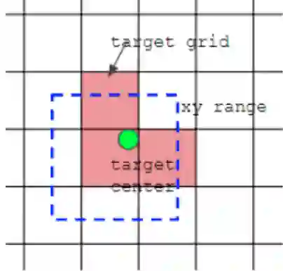 如下图所示,绿点表示该gt bbox中心,现在需要额外考虑其2个最近的邻域网格的anchor也作为该gt bbox的正样本,明显增加了正样本的数量。