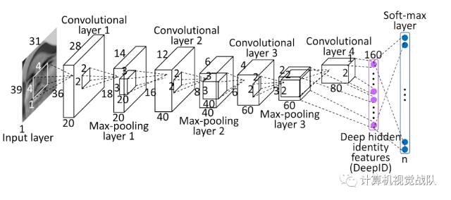 DeepID是第一代,其结构与普通的卷积神经网络差点儿相同。结构图例如以下: