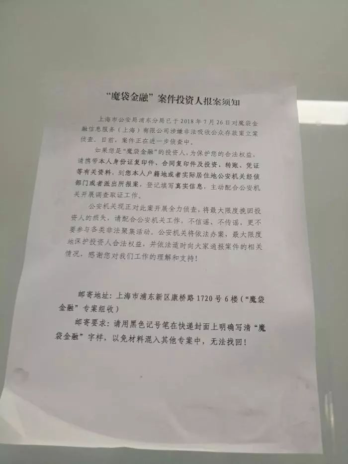 8月14日,21世纪经济报道记者来到上海市公安局浦东分局经侦支队,在现场可以看到,来自多家理财平台的出借人正在报案中,也有部分平台报案须知贴出,不过未见点牛金融相关公告。