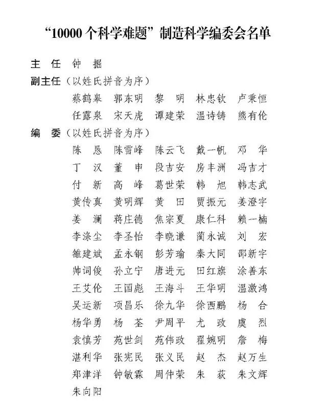 条目评审过程中我们形成一个共识:科学难题是当前学术界基本达成共识的未解决的问题,但是对难题的立意和分析客观上存在的不同学术见解,《10000 个科学难题·制造科学卷》不可能一一述及,我们尊重编撰者的学术观点,同时也努力不给读者留下“此乃唯一”的思维约束,我们期望《10000 个科学难题·制造科学卷》给予读者的是对“制造如何创造物质产品社会”的好奇心的激励、探索的提示和智慧思考的萌生,也希望读者特别是青年读者能以此初心阅读《10000 个科学难题·制造科学卷》。