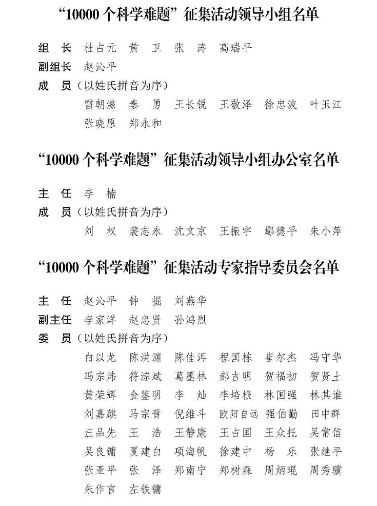 其后,许多自然科学领域的科学家们陆续提出了各自学科的科学难题。