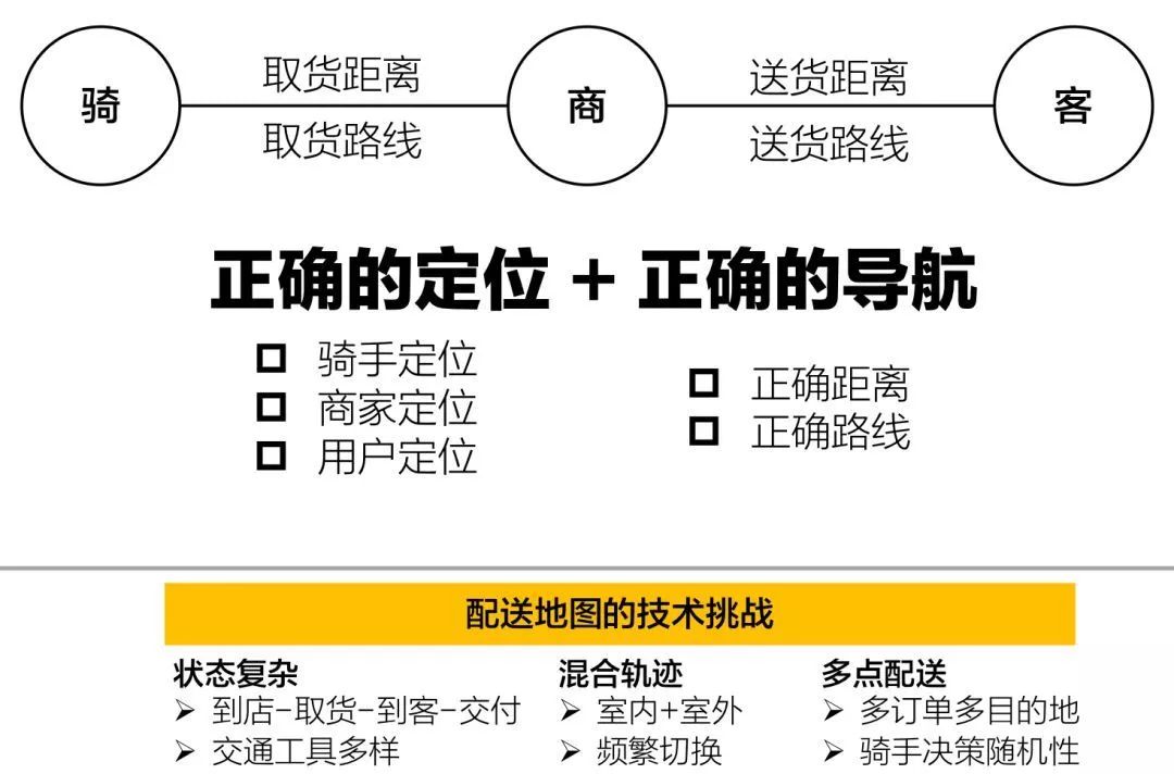 从这两方面对比可以看到,在即时配送业务中,骑行地图的重要性非常之高,同时很多问题确实非常具有行业特色,通过驾车地图的技术无法很有效的解决。这样就需要建设一套即时配送业务地图的解决方案。
