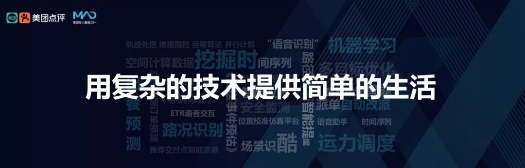 美团外卖日订单量超过2400万单,已经占有了相对领先的市场份额。美团配送也构建了全球领先的即时配送网络,以及行业领先的美团智能配送系统,智能调度系统每小时路径计算可达29亿次。如何让配送网络运行效率更高,用户体验更好,是一项非常困难的挑战,我们需要解决大量复杂的机器学习和运筹优化等问题,包括ETA预测,智能调度、地图优化、动态定价、情景感知、智能运营等多个领域。过去三年来,美团配送AI团队研发效果显著,配送时长从一小时陆续缩短到30分钟,并且还在不断提升,我们也希望通过AI技术,帮大家吃得更好,生活更好。