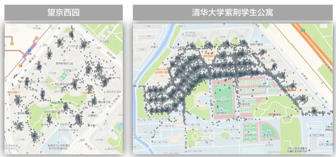 上图右侧部分看到,我们挖掘的交付点基本上能与楼宇的单元门对应。而且没有明显偏差比较大的部分。这个质量基本达到我们之前设定目标,也证明配送大数据的巨大潜力。