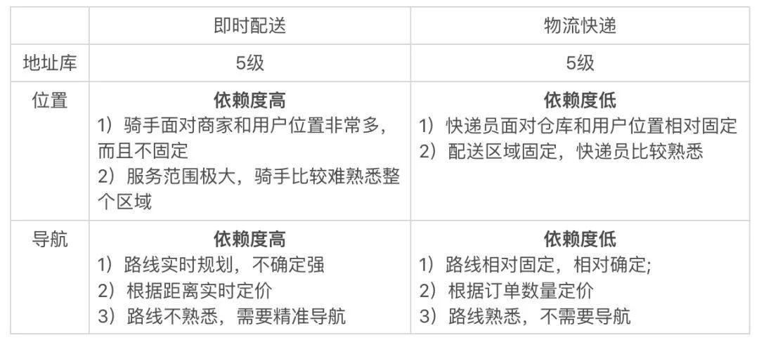 即时配送 VS 物流快递:即时配送对地图的依赖程度明显高于物流快递