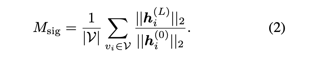 适当约束的情况下,特征变换可以放大节点嵌入的量级,这种放大的幅度呈指数增长,从而导致前向节点嵌入的不确定性和随机性。为了量化节点嵌入在整个 GNN 模型中幅度放大,将信号放大率定义为: