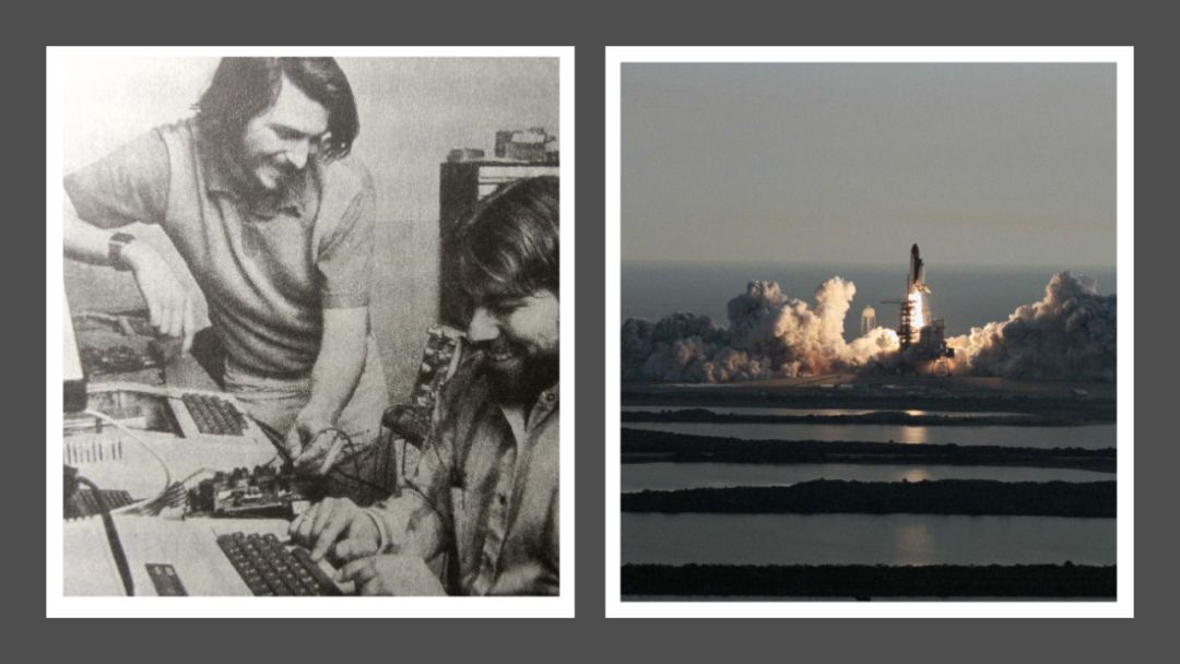 但是我们看这张图,这是我们当代人眼中80年代的美国非常有代表性的两张图。80年代后,美国不仅没有进入刚才讲的大规模经济衰退,反而是从那个时候开始通过对我们大家熟知的个人电脑、信息技术、甚至是航天航空技术的应用,引来了整个社会生产力和生产效率的空前提升,也就是我们现在提及的美国产业升级黄金二十年。