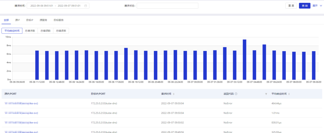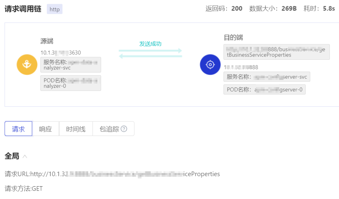 区别于传统的分布式追踪,基于 eBPF 的链路追踪不止能跟踪某次调用,还具有无入侵、语言框架无关的特性,请求如果包含了分布式追踪 TraceID,也能自动识别,方便联动分布式监控平台进行排查。对某次请求来说,可以精确看到接收、处理、回应、耗时的数据,方便问题排查人员从问题节点定位到问题接口,从而进一步辅助问题的解决。(如图 8 所示)。
