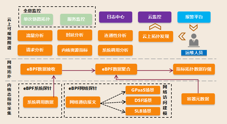 网络拓扑分析:负责分析处理节点之间的调用关系,系统调用分析模块则负责处理应用系统调用的分类、聚合与信息关联。