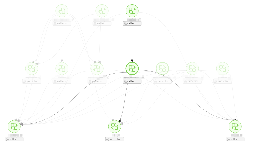 在当前分布式服务的架构下,发生问题后进行分析定位是一个非常复杂的过程,不仅要求问题分析人员对全局应用有大致了解,还需熟知各个应用的特性、调用关系、部署方式。而应用拓扑感知(如图 7 所示)则提供了一个非常强大的功能:通过无侵入式采集的数据建立节点间全局的调用拓扑关系,在异常应用定位时,可以让问题一线人员非常快速的感知存在网络问题的节点。