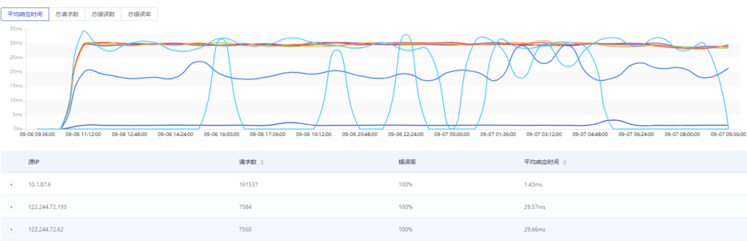 黄金指标是谷歌针对大量分布式监控实践的经验总结,4 个黄金指标可以在服务级别帮助衡量终端用户体验、服务终端、业务影响层面的问题。可观测平台层支持请求数、响应时间、错误率、慢调用情况,整体反映应用健康状态,快速评估故障影响,节约故障定位时间(如图 10 所示)。