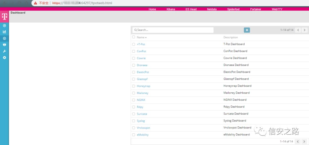 t-pot 是一个基于 Docker 的高交互蜜罐平台,集成了Conpot、Cowrie、Dionaea、Honeytrap 等多个蜜罐。t-pot 对于资源的要求也比较高(t-pot 安装需要至少 6-8 GB RAM 和128 GB可用磁盘空间 (SSD) 以及可用的互联网连接),目前的最新版本为 19.03。可采用镜像 (ISO)的方式进行安装。