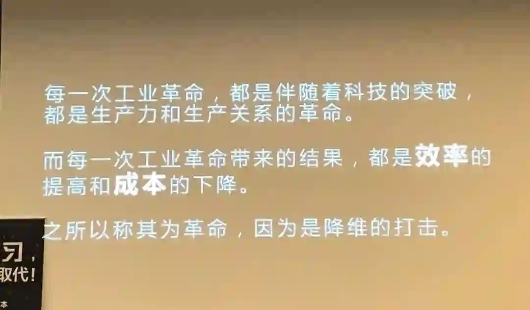我们既不要成为时代的弃儿,也不希望成为烈士,我们最希望成为一个先行者。这个时代最大特征就是机器从代替人的四肢开始,已经于无声处开始代替人的大脑,甚至会慢慢代替所有能够出现的人类能力。明白这一点我们才可以理解所处的时代。
