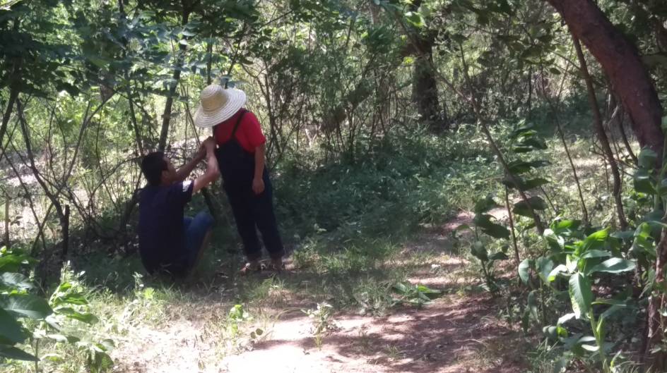 陈志刚把车停在山下的一片树阴下,我们三个抄小路上山。山里很多直上直下的陡坡,我不禁替六个月身孕的成亚琦捏把汗。事实证明,我的担心完全是多余的,她在山里行走自如,看上去比我轻松许多。我在一个陡坡上面连续滑下去三次,最后只得求助于穿着凉鞋一脚瞪上去的陈志刚,让他拉了我一把。