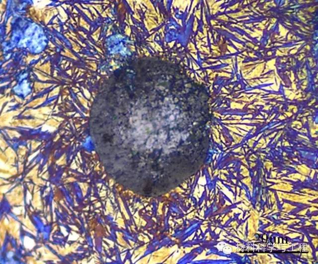【64田真】材料:球墨铸铁。处理工艺:等温淬火。侵蚀方法:4%硝酸酒精溶液。拍摄条件:LeicaDM2700M金相显微镜正交偏光下拍摄。组织说明:球状石墨+马氏体+下贝氏体,其余为残余奥氏体。天际霞光入水中,水中天际一时红。直须日观三更后,首送金乌上碧空。——《晓日》唐·韩偓。