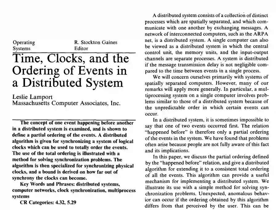 在1978年的一篇开创性的论文中,Lamport引入了「