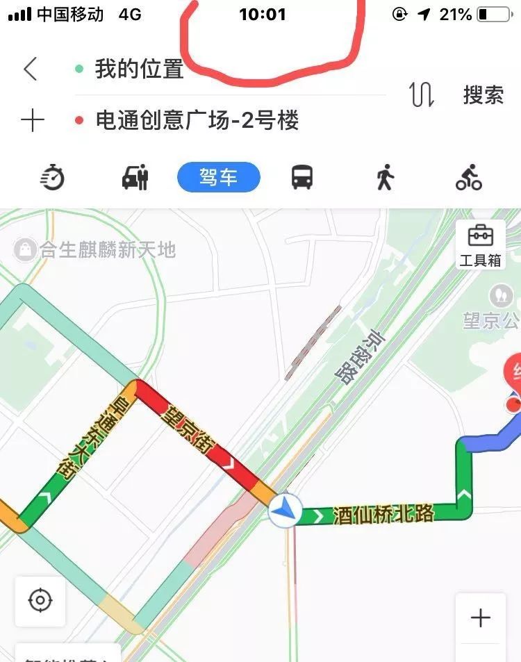 记录显示,到大山子路口仅有777米的距离,足足用了24分钟。(这只是在弱高峰时间段,同时老创也替赶在早高峰出行的同学心疼一秒钟)。