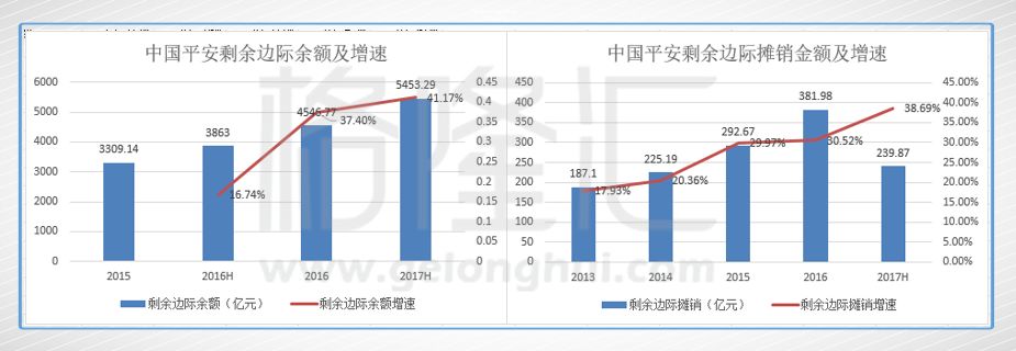 寿险公司的会计利润主要有剩余边际,风险边际,经营偏差,假设变动组成,由于风险边际的值远小于剩余边际的值,经营偏差基于寿险公司经验数据,因此剩余边际的数值和释放法则决定了净利润,可以看到平安剩余边际余额维持30%以上的增长,而且摊销金额保持稳定增长,剩余边际的稳健释放就已经是很好的保证了。