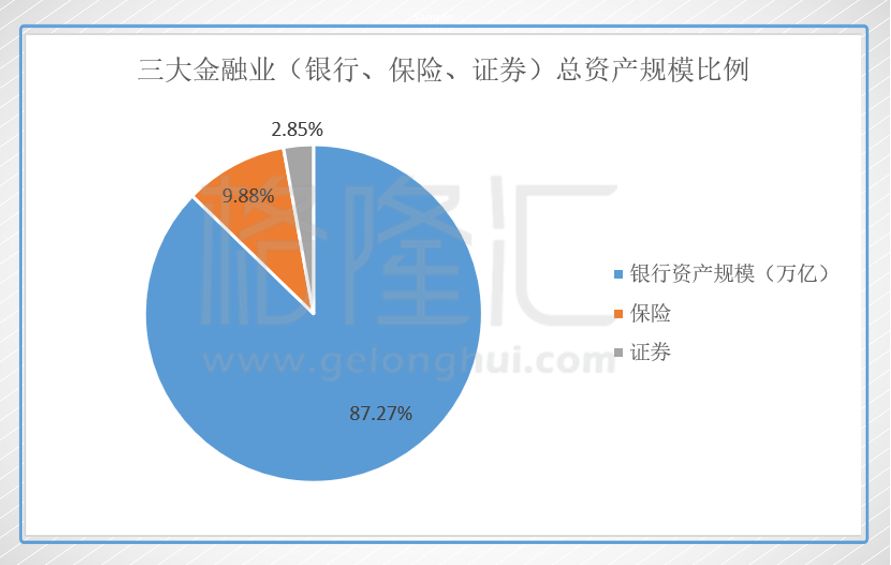 用一个简单、直观的等式表达:一个232万亿总资产的银行业≈53个证券业≈15个保险业。