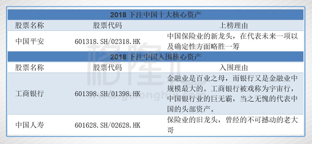 在《寻找中国核心资产,赌国运,需要你!》发出后,各个渠道的会员讨论热烈,收集了大量的信息,最终综合多方意见,隆重推出了:2018下注中国十大核心资产。