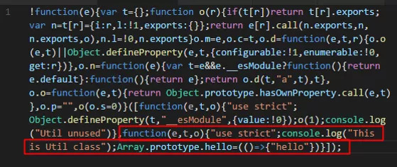 虽然 Util 类被引入之后没有进行任何使用,但是不能当做没引用过而直接删除。在混合后的代码中,可以看到 Util 类的本体 (export 的内容) 已经没有了,但是前后的 console.log 和对 Array.prototype 的扩展依然保留。这就是编译器为了确保代码执行效果不变而做的妥协,因为它不知道这两句代码到底是干嘛的,所以他默认认定所有代码 均有 副作用。