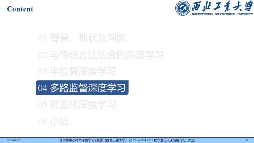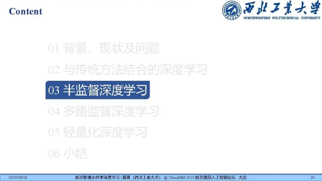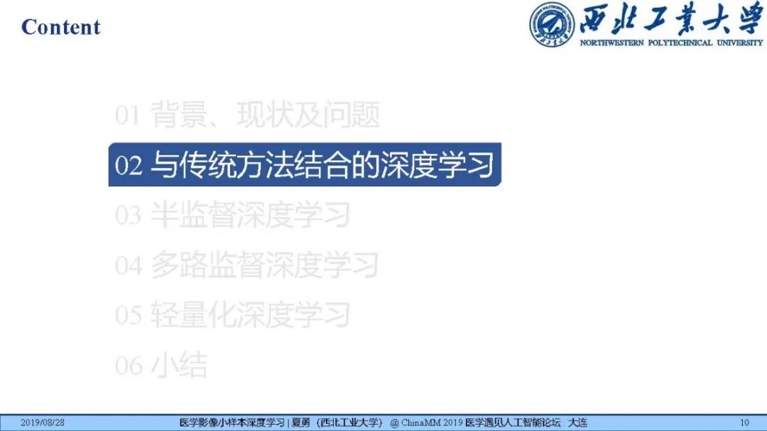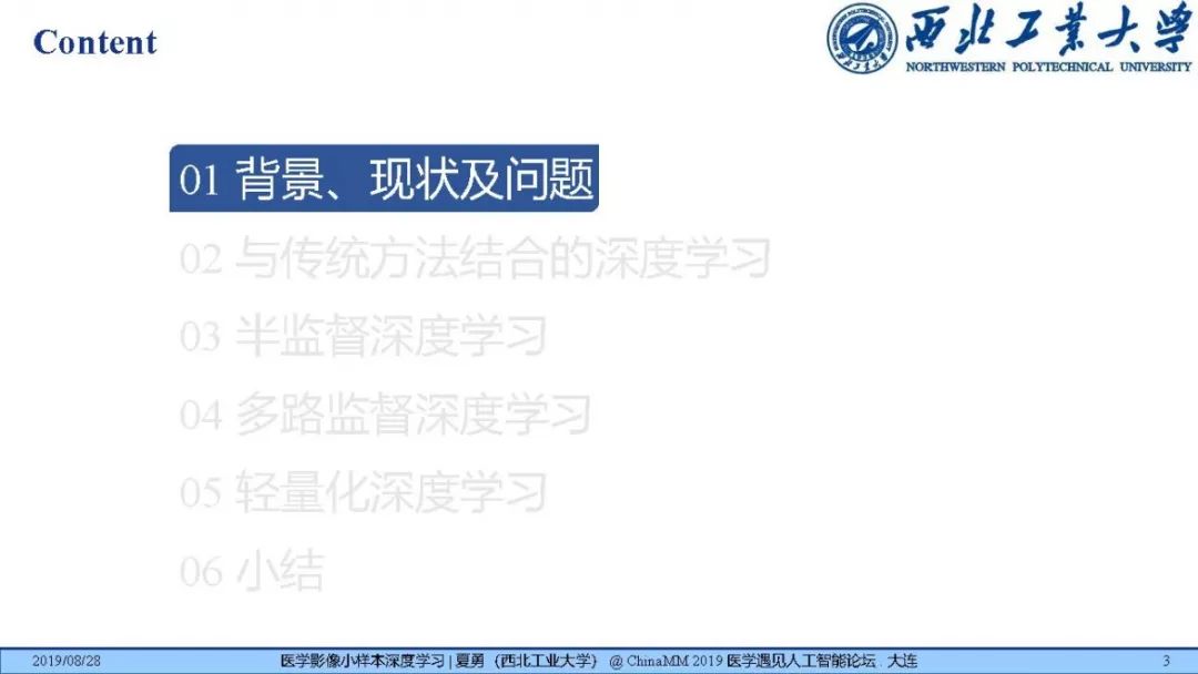 西北工业大学夏勇教授在中国多媒体大会(ChinaMM2019)的“医学遇见人工智能”专题论坛上做了“医学影像小样本深度学习”的专题报告。图图有幸聆听了这个报告,现分享给图粉们。