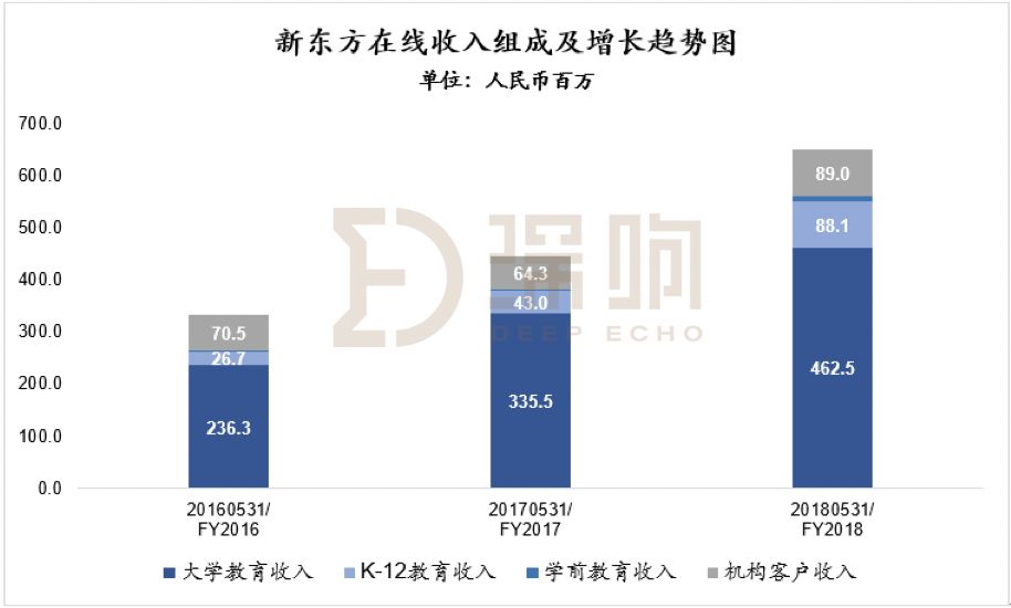 在“新东方在线”的收入组成中,K12部分增速最快。数据来源:“新东方在线”招股书,制图:深响