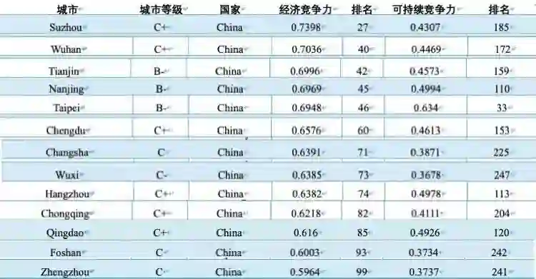此次报告分为两个指标体系:城市经济竞争力与可持续竞争力。