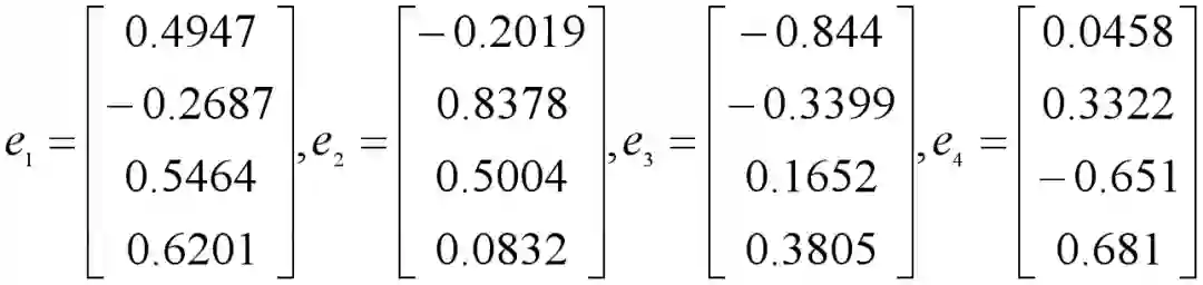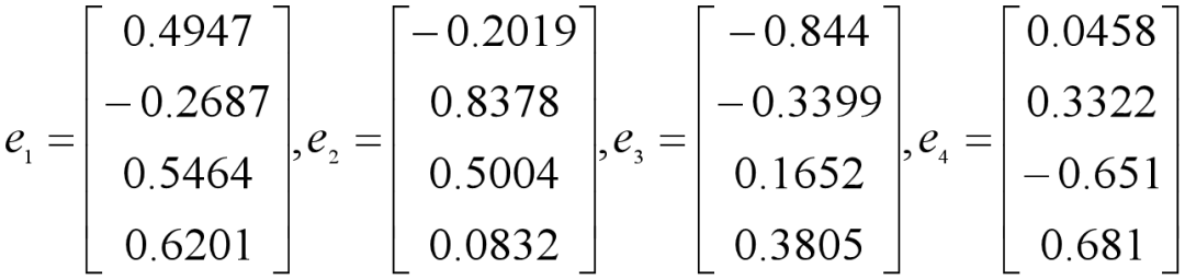 得到特征值是λ1=2.3326 ,λ2=1.0899 ,λ3=0.5399 ,λ4=0.0376,已经是从大到小排列好的了。