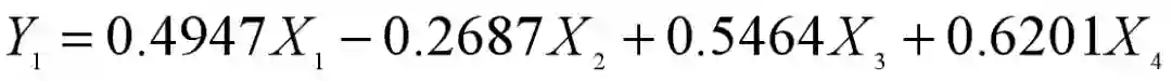 我们得到第一个主成分如下,也就是用最大特征值的特征向量对原始变量进行线性组合。