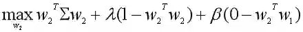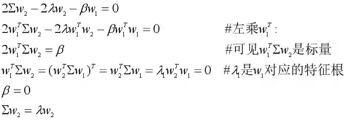 数据集X在w2上的投影为z2=w2TX,除了满足w2的L2范数平方为1的条件外,还需要满足w2Tw1=0,其中w1是我们已经求出来的。