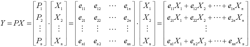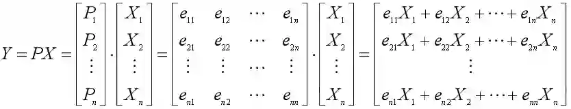 4、按照特征值从大到小的顺序,将单位特征向量排列成矩阵,得到转换矩阵P,并按PX计算出主成分矩阵;