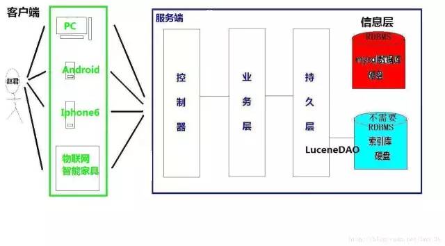 我们如果网站需要根据关键字来进行搜索,可以使用SQL,也可以使用Lucene...那么我们Lucene和SQL是一样的,都是在持久层中编写代码的。。