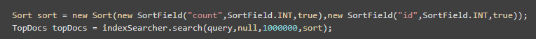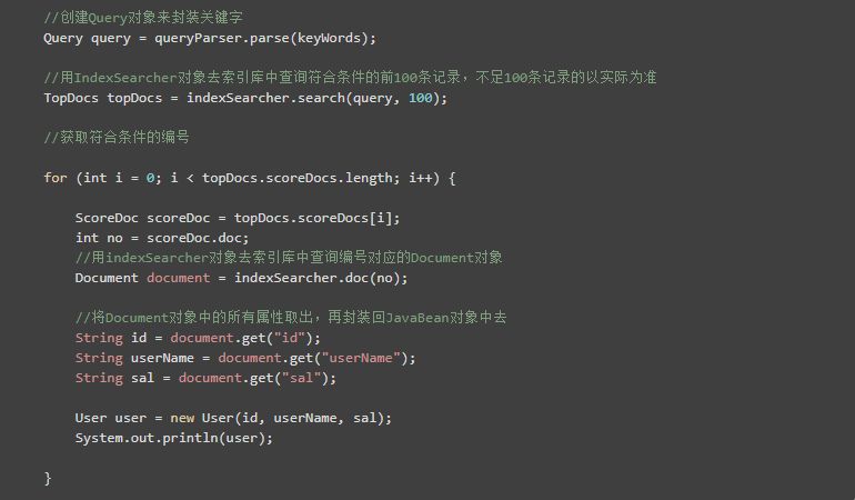 4)用IndexSearcher对象去索引库中查询符合条件的前100条记录,不足100条记录的以实际为准