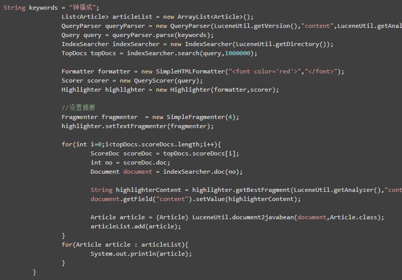 如果我们搜索出来的文章内容太大了,而我们只想显示部分的内容,那么我们可以对其进行摘要...