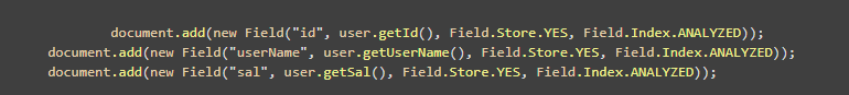 3)将JavaBean对象所有的属性值,均放到Document对象中去,属性名可以和JavaBean相同或不同