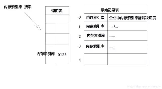 一旦用户根据关键字来进行搜索,那么程序就先去查询词汇表中有没有该关键字,如果有该关键字就定位到原始记录表中,将符合条件的原始记录返回给用户查看。