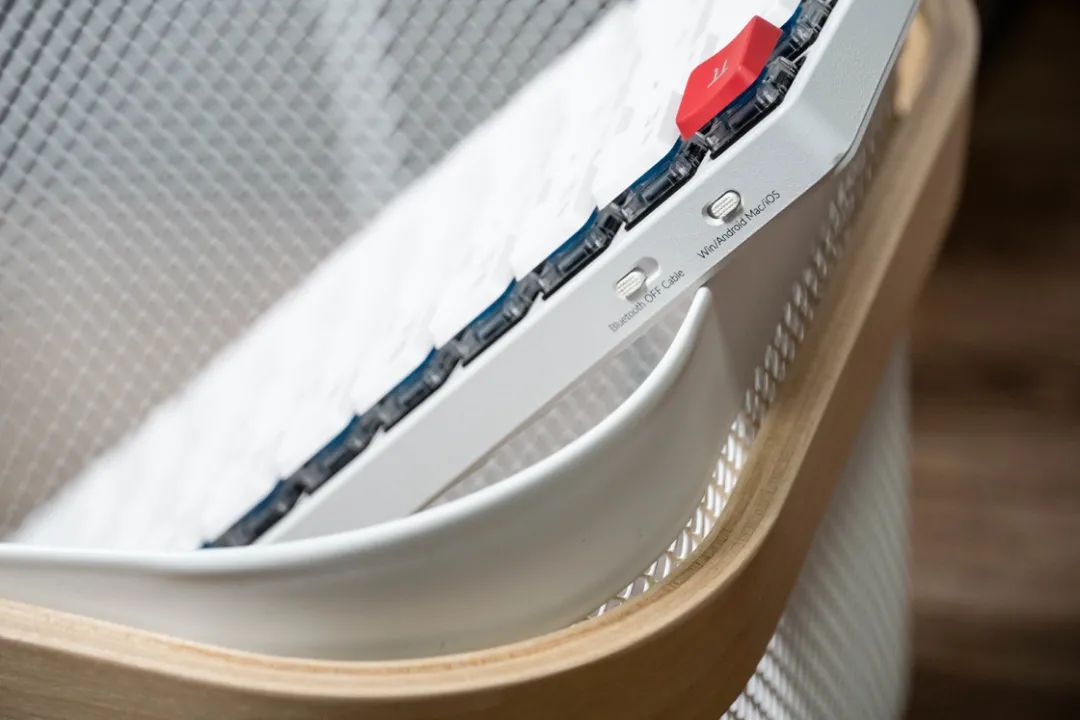 当然这并不代表着 Windows 用户没有被关心,随键盘会附送对应两套系统的空格左右系统控制键增补键帽,键盘顶部也有拨码开关来切换不同的系统模式。