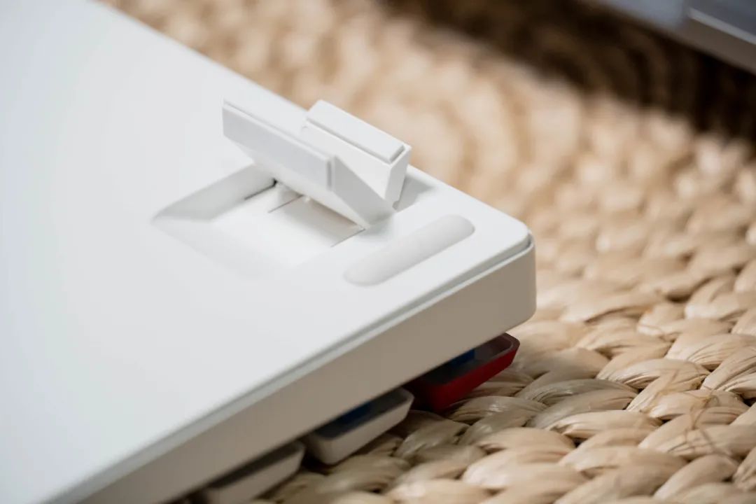 以及底部的两段式调节脚架,可以帮助你找到最合适的输入角度。不过因为键盘本身已经很薄了,而且本身也有了一定的人机角度设计,我的建议还是不要再继续抬高键盘顶部以避免输入时手腕处有太大的仰角,那样会让你的手腕承受太大压力甚至患上炎症。